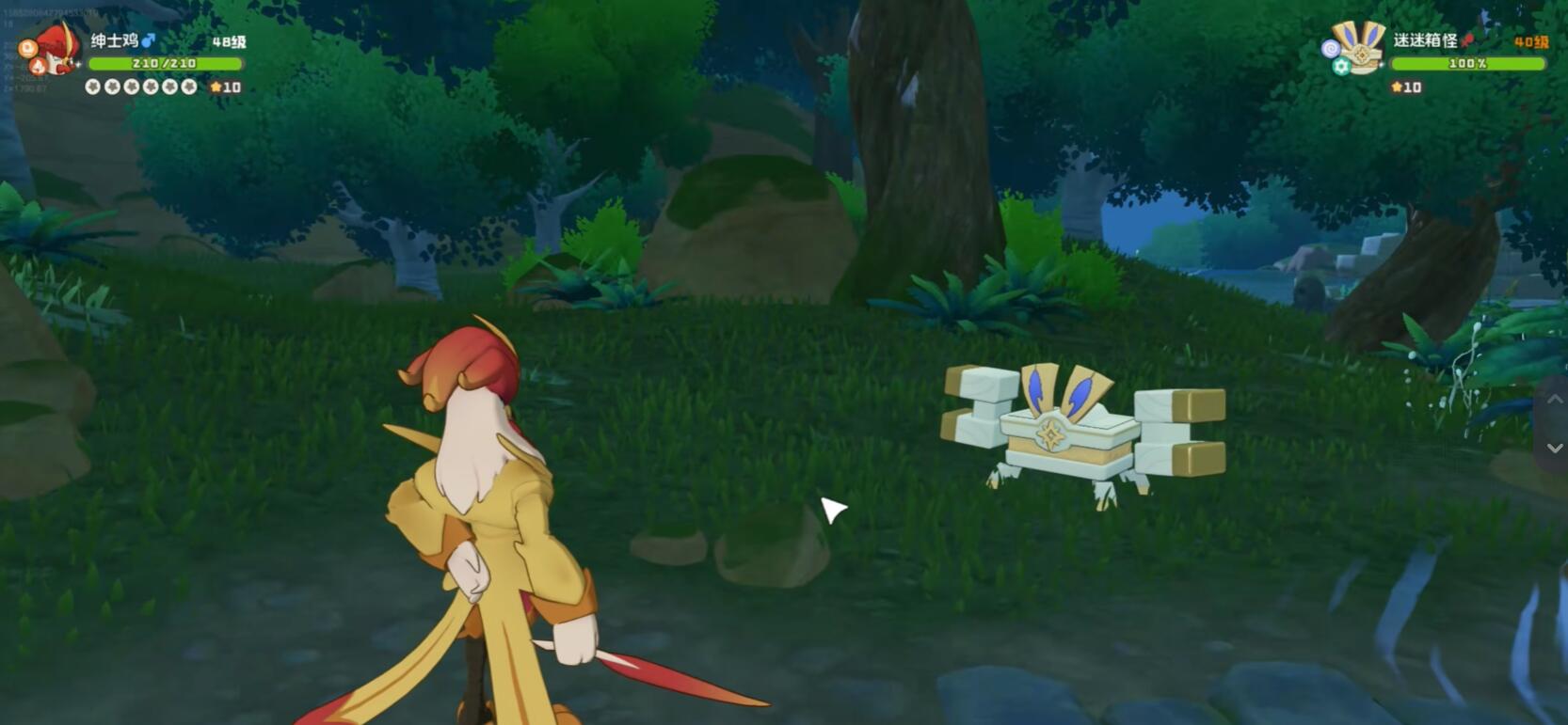 在探索过程中,左侧小型宝箱多为低等级迷迷箱怪,行动前会主动施放防御类技能进行自保,辨识难度较低;若队伍中配有火系精灵,可大幅提升开启效率。而右侧宝箱则更具迷惑性,表面为普通容器,实则需通过战斗击败后才显露真身——即伪装的迷迷箱怪。