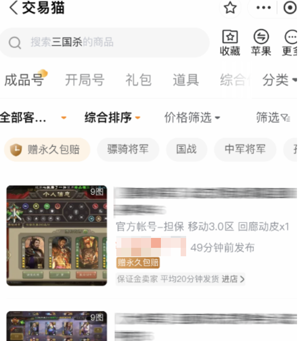 初入三国杀的新手玩家,往往渴望拥有一个具有基础资源的账号,以便可以快速的进入熟悉游戏,而那些资深一点的玩家就期望一些高等级稀有皮肤丰富资源的账号去追求更高的游戏体验。不过,不管你是新手玩家还是资深玩家都能够在这个平台上找到自己满意的账号,打开交易猫app在搜索栏输入三国杀,瞬间就会有很多很多相关的账号信息,丰富的账号类型和多样的账号属性,能够满足不同玩家的个性需求,让每一位玩家都能够找到最适合自己的账号。