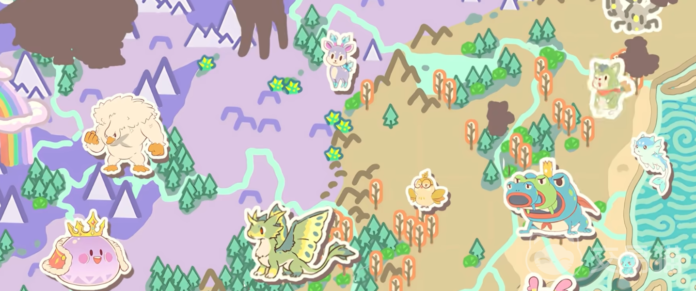 游戏中最具辨识度的角色是名为“噜咪”的原创精灵体系。它们并非通过传统开放世界探索获取,而是依托节奏感十足的横向跑酷机制随机触发相遇。目前已实装火山、森林、沙漠、热带雨林四大主题地图,每张地图中的噜咪形象与行为逻辑均深度契合对应地貌特征。全游戏已确认登场噜咪数量达五十只以上,涵盖不同外观、性格与成长路径。