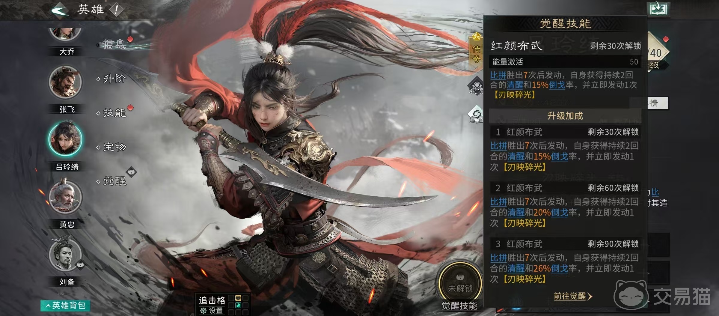 其觉醒技能需累计7次比拼胜出方可激活,持续两回合,提供“清醒”与“倒戈”双重效果。“清醒”使其免疫所有控制类状态,“倒戈”则在造成伤害后按比例恢复自身生命,并立即再次触发天赋比拼。由此可见,比拼成功率直接决定其持续作战能力与生存韧性。建议在布阵阶段优先预判敌方阵容构成,针对性选择以智力型武将为主的对手,最大化发挥其机制优势。
