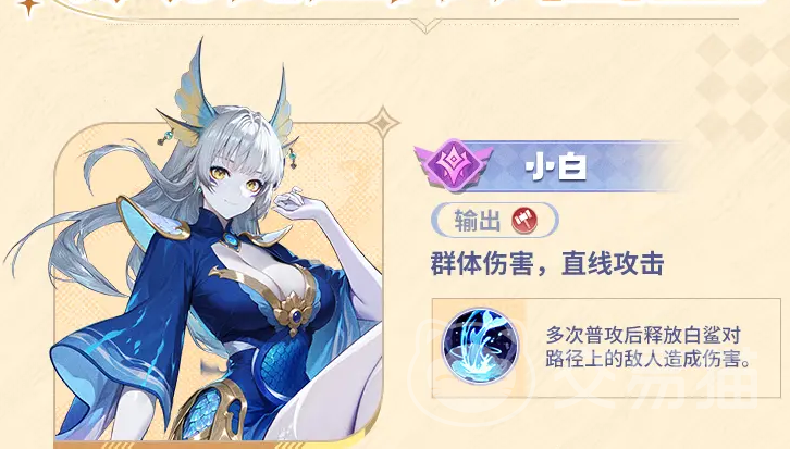 首位推荐角色为小白——高频率范围输出型洪荒兽神。其普攻具备概率触发“白鲨突袭”效果,对正前方直线路径上的所有目标造成伤害,兼具单体点杀与群体压制双重能力。该机制不依赖能量条释放,大幅降低全队技能循环压力,可有效保障其他兽神大招的稳定衔接。在养成路径上,小白以攻击力为核心成长方向;因其大招倍率中等,实战中主要依靠高频普攻叠加范围伤害实现快速清图,无需投入资源堆叠暴击或效果命中等次要属性。