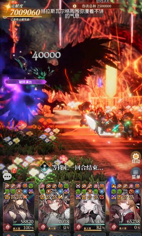 具体操作流程为:首回合由拉格娜释放增益技能,建立火伤加成与抗性削减双层buff;随后渡与剑盘依次衔接普攻、小技能及终结技,最大化输出密度;辅助角色根据队伍血量动态调整行动——健康状态下优先使用资源消耗型技能压低Boss血线,危急时刻则立即启用治疗或护盾技能稳住阵型。在角色练度达标前提下,整场战斗可控制在60秒内结束。