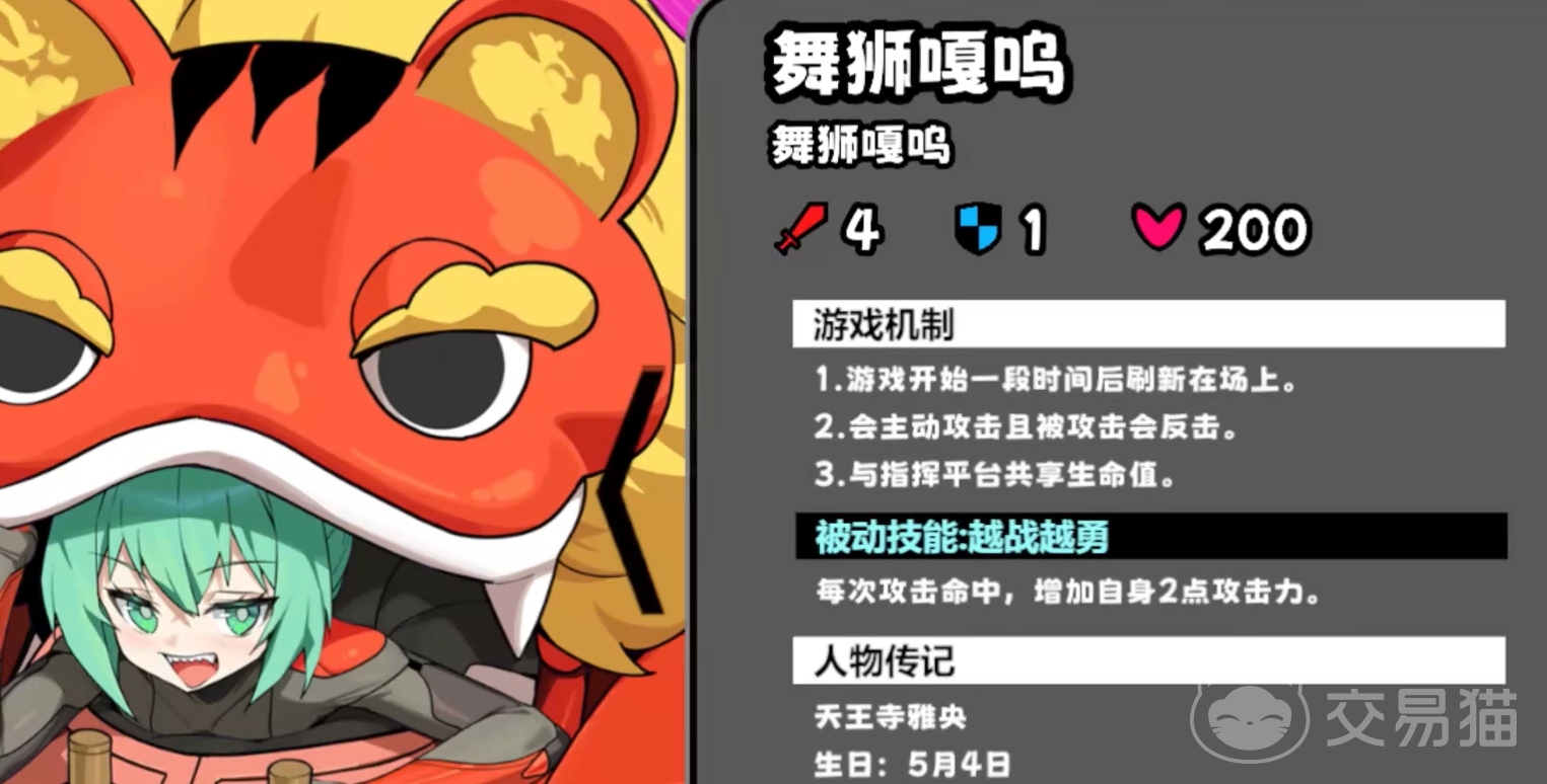 该Boss与指挥平台共用血条,对其造成伤害会同步削减双Boss总生命值。但舞狮嘎呜具备反击机制,在高血量阶段反击频率与强度显著提升。因此需分阶段应对:前期避免由易触发反击的角色与其直接交战,优先集中手牌与技能进行远程压制;待其生命值下降至50点以下后,反击概率与伤害增幅明显减弱,此时再切换主力输出角色进行近身作战,可实现风险可控下的高效击杀。