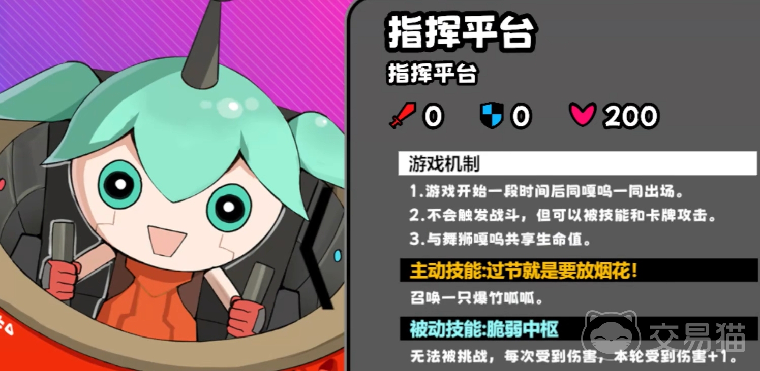 作为双Boss之一,指挥平台与舞狮嘎呜共享同一套生命值系统,但自身不具备战斗交互能力——即不会进入常规战斗流程。其关键机制在于:一旦在某一轮次中受到任意伤害(无论来源),则该轮内后续所有对其造成的伤害均+1。此特性支持明确的节奏规划:建议由行动顺序靠前的角色率先使用真伤手牌或高确定性技能打出第一击以激活加伤,随后所有队友在当轮内继续施加伤害时均可享受增益效果,大幅提升整体DPS效率。