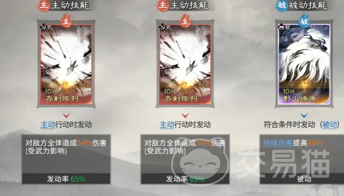 技能组合侧重机制协同:魏延主动技选用“齐射阵列”,65%发动率,对敌方全体造成54%武力伤害;被动技“野火燎原”提升66%持续伤害,使流血效果实际倍率翻倍。曹操主动技推荐“一夫当关”,72%触发概率,降低自身14%所受伤害,引导敌方集火目标,间接保障孙权生存与输出环境。孙权主动技选择“惑心挫志”,67.5%发动率,选定敌方三人造成60%魅力伤害,并有20%概率附加持续两回合的25%虚弱效果。
