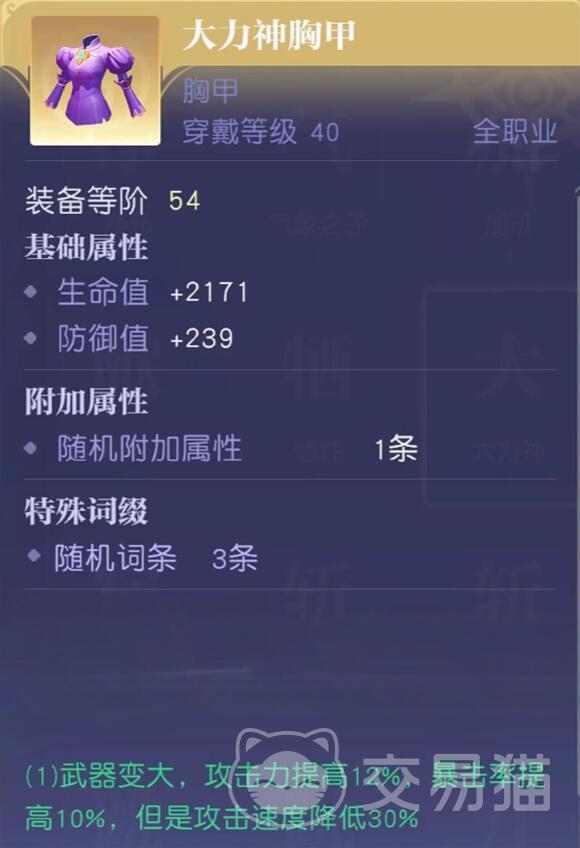装备采用动态词缀系统:除基础属性外,自带1条随机主属性与3条随机副词条。这种非固化配置意味着每件大力神胸甲均具备唯一性——玩家可通过反复获取,定向筛选暴击伤害加成、技能冷却缩减等关键词条。正因如此,它并非短期过渡装备,而是支撑多种Build长期成型的核心部件,例如暴击流、速切流或混合爆发体系均可围绕其词条组合进行构建。