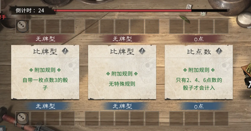 “乾坤一掷”采用三局两胜制,每局包含比数量、比点数、比牌型三种对战模式。其中牌型判定需特别注意:仅当所有格子填满时,所组牌型才视为有效;其余模式则无此限制。标准牌型由高至低依次为:四顺、4条、两对三条。每局提供一次重投机会,便于调整不利骰面;若判断优势明显,可点击右侧加注按钮,提升单局筹码收益。经实测验证,熟悉规则后胜率显著提升,投入产出比表现优异。