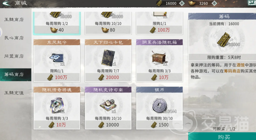酒馆体系以“筹码”为核心流通资源。玩家每日首次登录即可领取8000筹码;若额度不足,可通过筹码商店补充,但需注意:每日及每周均有明确购买上限。所获筹码可灵活用于玉髓商店等多类兑换渠道,换取“天下归心”卡包、随机传奇卡魂等稀缺道具。当前酒馆开放两大核心玩法——“乾坤一掷”与“古迹寻遗”。综合节奏与产出效率,现阶段优先推荐参与“乾坤一掷”:单局耗时约三分钟,匹配迅速,规则易懂,是稳定积累筹码的优选方式。