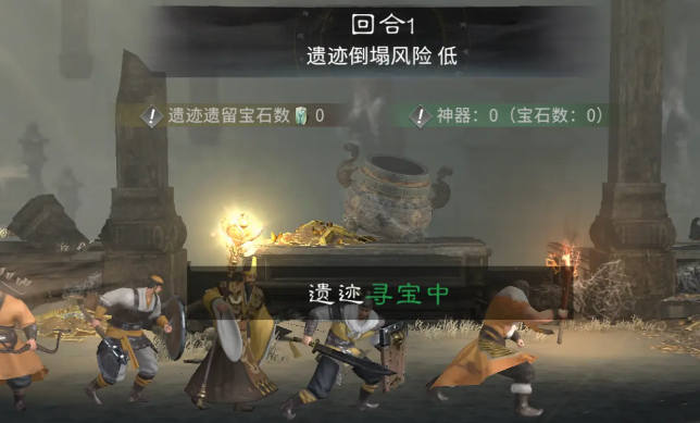 另一玩法“古迹寻遗”侧重策略决策与风险权衡。该模式需5人组队方可开启,平均单局时长约5分钟,匹配等待时间略长。玩家扮演遗迹探险者,在限时坍塌机制下采集宝石,并与其他参与者展开动态博弈。每回合结束时,可选择“撤离”或“继续探险”:撤离将保留当前持有宝石及部分遗留宝石,多人同步撤离则均分总宝石量;若选择深入,则可能获取更高收益,但随回合推进,坍塌概率持续上升,一旦触发,所有未撤离宝石即刻清零。
