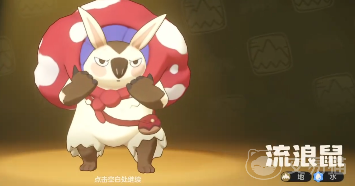 本次重制版奔波鼠在视觉呈现上进行了显著优化:标志性的背部小包裹被替换成一枚拟态蘑菇造型,整体风格更显灵动清新;细节处仍保留原有系带结构,巧妙延续了经典设定。属性方面维持地系不变,基础形象延续憨厚中透着机敏的特质。虽然种族值未侧重攻击与防御成长,但其专属被动技能“寻光感知”可主动标记地图内所有闪光类隐藏资源点——包括宝箱、采集物、剧情线索道具等,在前期开荒阶段大幅降低遗漏率,提升探索效率。