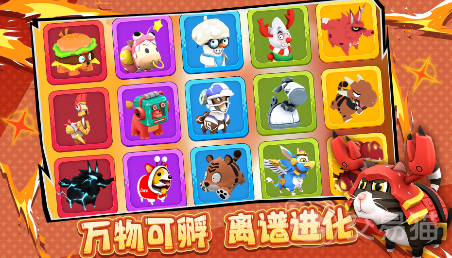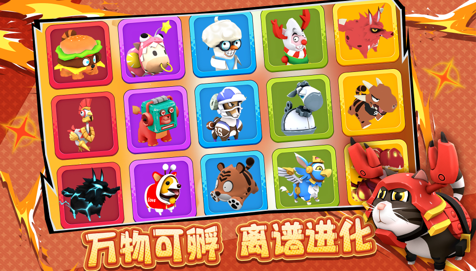 本作采用俯视角3D建模,结合高精度物理引擎,呈现真实可信的碰撞反馈。场景设计兼顾童趣与细节,从农场到森林、沙漠等多元地貌陆续解锁。玩家可自由选择初始动物角色,通过升级解锁进化路径,收集宠物蛋并孵化稀有物种,不同生物自带专属技能,技能效果将在实战中动态融合生效。