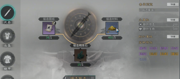 龙泉宝剑需通过锻造系统获得,该系统包含常规锻造与高级锻造两种模式。常规锻造消耗图纸、银币及通用素材;高级锻造则额外需要精炼石。值得注意的是,普通锻造图纸存在概率产出稀有套装词条,但龙泉宝剑仅能通过其专属图纸稳定获取。该武器不绑定任何武将,且可作为后期专属武器升星所需材料,资源利用率高,无养成浪费风险。
