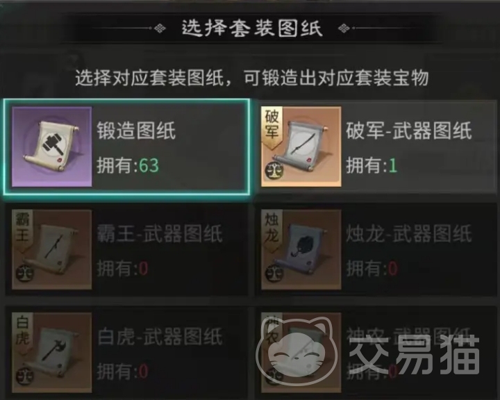 所有锻造行为均依赖两类核心资源:锻造图纸与锻造材料。图纸分为“普通随机图纸”与“特殊指定图纸”。前者产出结果不可控,可能获得任意套装中的随机部位宝物;后者则锁定目标套装,确保锻造结果为该套装内指定部位的宝物。由于特殊指定图纸获取难度较高,建议前期优先使用普通随机图纸积累基础部件,在凑齐某套宝物缺一即可成型时,再精准投入特殊指定图纸补全最后一环,从而有效控制资源消耗节奏与总体成本。