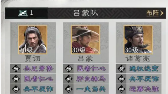 本阵容以“节奏压制”为底层设计思想:诸葛亮在敌方天赋触发瞬间完成反制伤害与控制施加,实现先手破招;贾诩则依托“连环打击”机制,在队友成功控场后自动激活追加伤害,并有概率附加混乱状态,形成多段控制链的无缝衔接。吕蒙并非传统意义上的输出或纯肉盾,其“白衣渡江”天赋可主动吸引敌方集火,同步为全队提供持续性的伤害减免,实质上构建起一道动态防御屏障,大幅提升整体阵型稳定性。