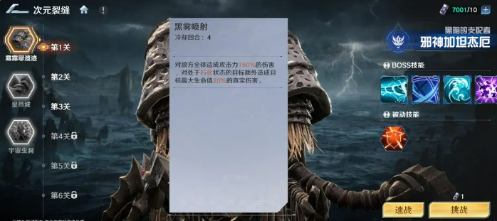 进入战斗准备界面后,右侧设有【BOSS情报面板】,可实时查阅目标的技能列表、属性抗性、行动节奏等核心数据。该信息为战术前置规划提供依据——例如针对高防御型BOSS需强化破防能力,面对高速压制型则应优先部署控制或先手角色,真正做到“知彼而战”。