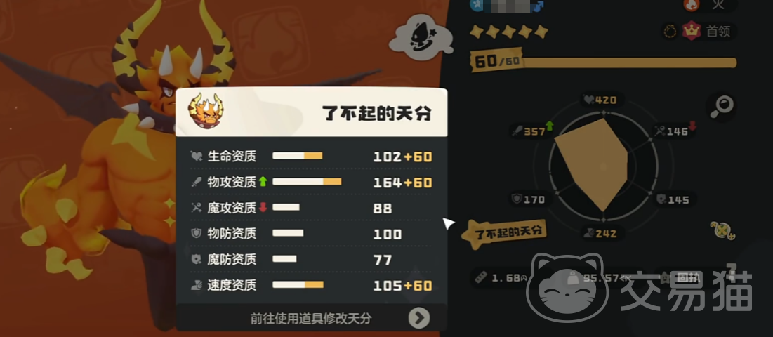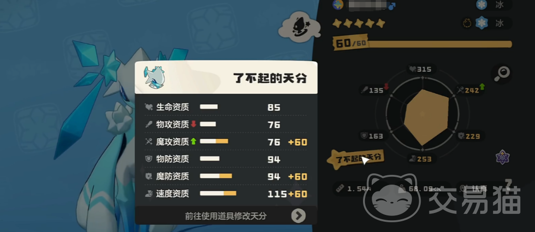 获取高天赋精灵主要有两种路径:野外捕捉与孵蛋培育。前者完全依赖随机性,首只即出“了不起”属小概率事件;后者可控性更强,尤其使用已知高天赋个体作为亲本时,后代优质天赋出现率显著提升。若已培养的精灵天赋欠佳,可使用开心豆或果儿糖进行重置操作,但每次仅能修改未锁定属性,需多次确认,流程较为细致。