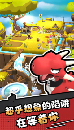 游戏构建了一个多层结构的3D农场世界,玩家操控形态各异的动物角色,在物理引擎驱动下展开实时碰撞对抗。场景中分布着可交互机关、动态障碍物及隐藏事件点,每场对局都会随机触发不同奇幻情境——例如地形突变、重力反转或临时技能区域,要求玩家即时判断走位与碰撞策略。需特别注意:误触陷阱机关将直接导致本局结束。