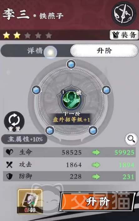 升阶操作需消耗对应角色专属碎片。以李三为例,晋升至下一阶级需集齐40枚该角色碎片;后续阶级所需碎片数量呈阶梯式增长——如二阶升三阶需50枚,三阶升四阶需100枚,四阶升五阶则需200枚。每次成功升阶,角色基础属性(生命值、攻击力、防御值)均获得显著提升,资源投入具备明确回报。