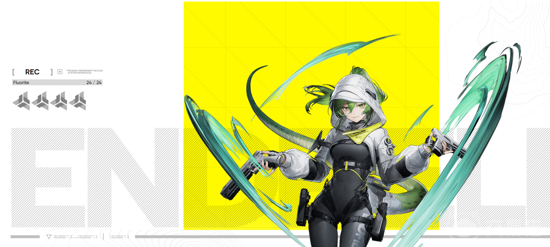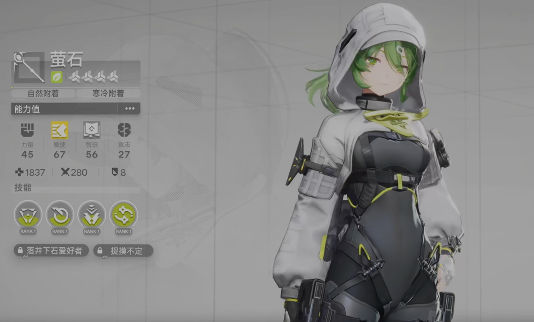 截至目前,《终末地》已通过实机演示、角色预告PV及官方资料确认:萤石是唯一明确公布且确定实装的斐迪亚族干员。她以冷峻灵动的视觉设计与高辨识度的绿色能量轨迹著称,定位为四星远程输出型角色,技能体系围绕“终结触发”与“多段范围伤害”深度构建。