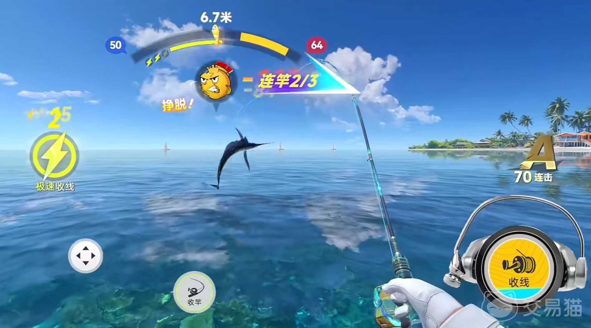为强化场景可信度,开发团队参照全球典型水域特征,复刻了逾百个差异化钓场,涵盖湖泊、水库、深海、急流等环境类型。每处钓点均配置独立光照、潮汐、天气及昼夜循环系统。鱼类图鉴收录超百种实体建模对象,从形态比例、游动轨迹到受惊反应均经过生物行为学参考。操作层面采用轻量化设计:新手可通过三步引导快速掌握抛竿、收线、控杆基础;进阶阶段则引入张力反馈曲线、竿身弹性模型与拟真浮漂信号系统,使每一次搏鱼都需判断鱼种习性、调整施力节奏、选择应对道具。全程无体力值设定,不设强制日常任务,适配短时高频的移动使用习惯。