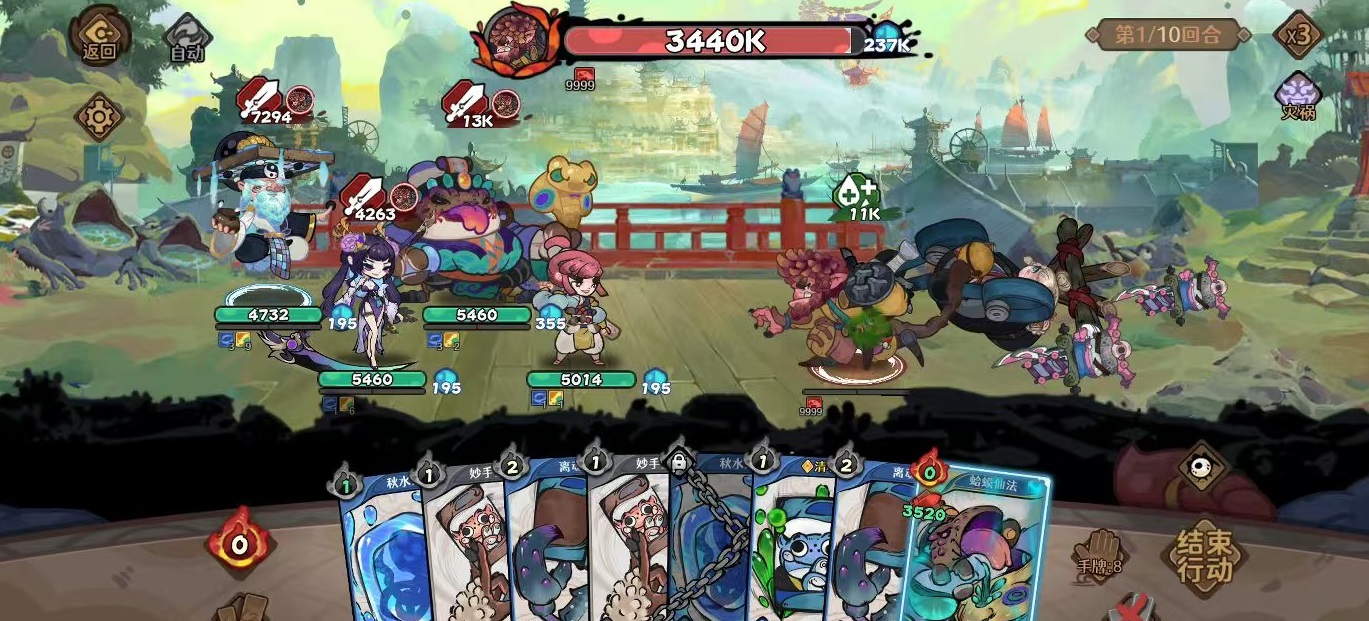 风陵渡的整体强度定位明确——它并非单纯堆叠血量或防御的“站桩型”副本,而是以机制驱动为核心的设计逻辑。其难度层级可对标鬼事篇中的冥石坊,但各项机制均进行了显著强化:BOSS具备高频反击、强制自爆、阶段复活及持续回血等多重交互行为。特别需注意的是,输出节奏一旦失控(例如单回合伤害过高),极易触发连锁机制响应,导致团灭。因此,本副本的通关关键不在于极限DPS,而在于节奏控制、生存续航与机制规避三者的协同。前期推荐采用自动剑魔流过渡,该配置可稳定推进至无尽模式第30重天;后续则需切换为毒队体系承接终局压力,而剑魔阶段正是多数新手建立认知、积累经验的首要环节。