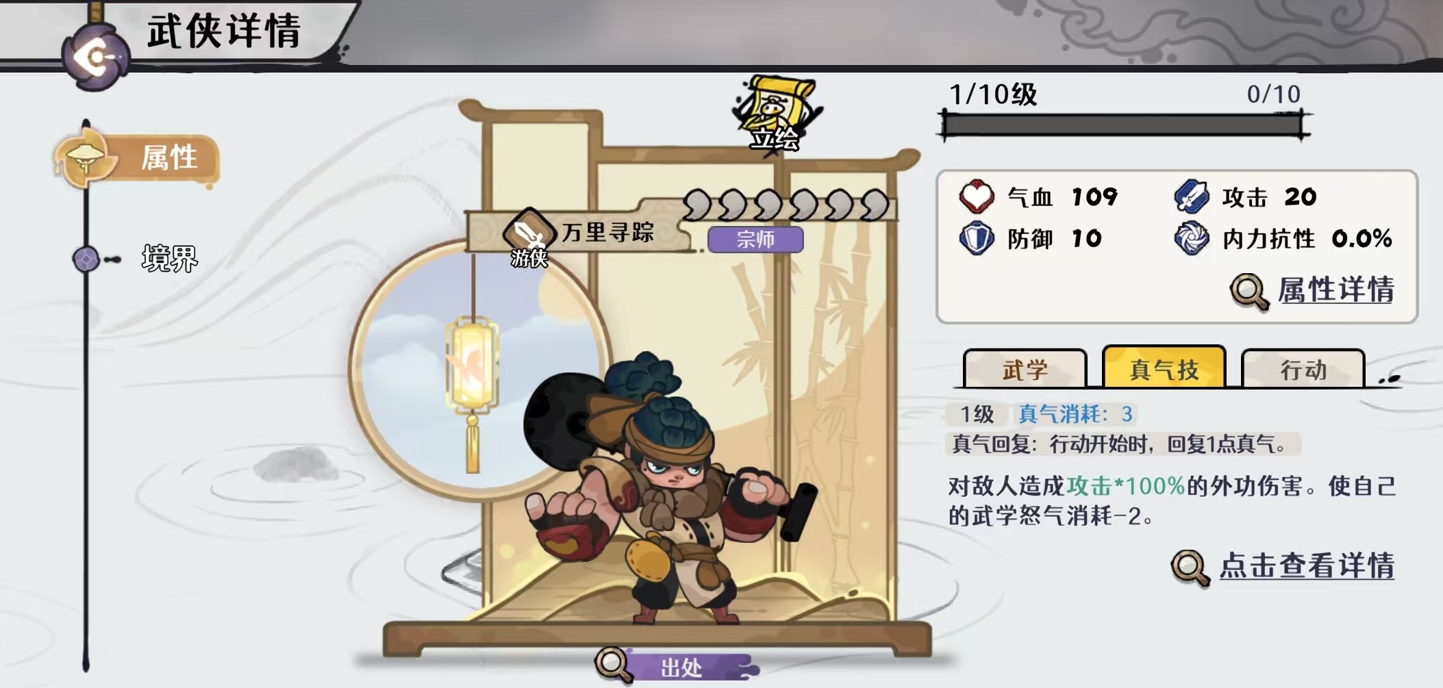 爆甲流的本质并非单纯堆叠护甲,而是以“护甲为引、破甲为刃”的闭环战术体系:前期通过高频施加护甲触发角色被动,积蓄怒气与行动资源;中后期借助特定武学强制移除己方全部护甲,同步激活高额连段伤害与循环机制。该体系三大支柱角色为撼地神牛(豪侠位)、万里寻踪(游侠位)与龙渊大师(悬壶位)。撼地神牛承担前排承伤职能,其武学“铁壁之盾”可为目标赋予护甲,且每使用一张防御牌或暴怒牌,怒气消耗即降低1点;真气技能则对敌方造成外功伤害,若目标无护甲,则我方立即追加一次行动机会,形成节奏压制。