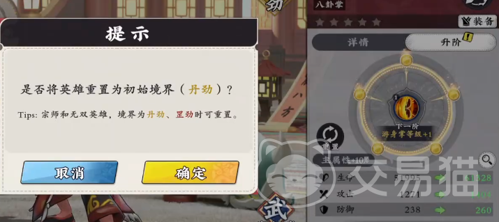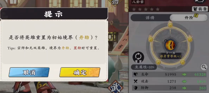 触发境界重置功能需满足明确前置条件:仅限已达成丹劲或罡劲境界的角色可执行该操作,一旦突破至更高境界(如化劲及以上),系统将自动锁定重置入口,不可逆向操作。因此,玩家需在角色晋升关键节点前完成策略评估,避免因误判导致资源浪费。