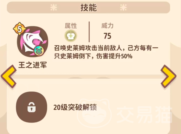 主动技能“群聚围袭”可召唤多只小史莱姆协同进攻,且具备成长型伤害机制:每有1只己方史莱姆单位阵亡,该技能基础伤害提升50%。理论最高可叠加至300点伤害数值——这一数值已稳居全游戏单段技能伤害梯队前列。实战中常采用前置部署策略:开局快速消耗低阶史莱姆单位触发层数,再由史莱姆王释放满层技能,实现对敌方高价值目标(如神兽级单位)的一击清场,节奏紧凑、压制力极强。