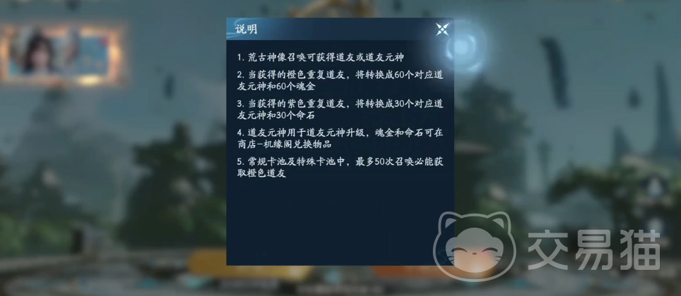 除抽卡本体外,游戏同步配置了多项辅助成长模块。例如荒古神像系统,提升其等级可缩短免费召唤冷却时间,并同步提升角色战力,但该系统不改变任何抽卡概率;命石坊则支持将重复获得的角色转化为命石,用于指定兑换目标角色的元神,从而加快关键角色的培养进度。