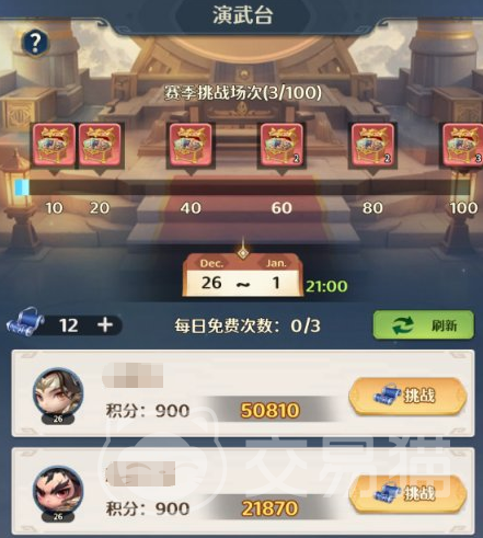 演武场为PvP竞技系统,每日提供三次基础挑战机会,用尽后可通过元宝补充次数。匹配机制基于实时积分排序,胜方获得积分增长,败方仅在应战状态下扣除积分;主动进攻失败不扣分。单场胜利所获积分与对手当前积分正相关——对手积分越高,获胜收益越大。每次成功挑战固定产出演武荣耀币,该货币仅限演武场专属商店兑换道具。