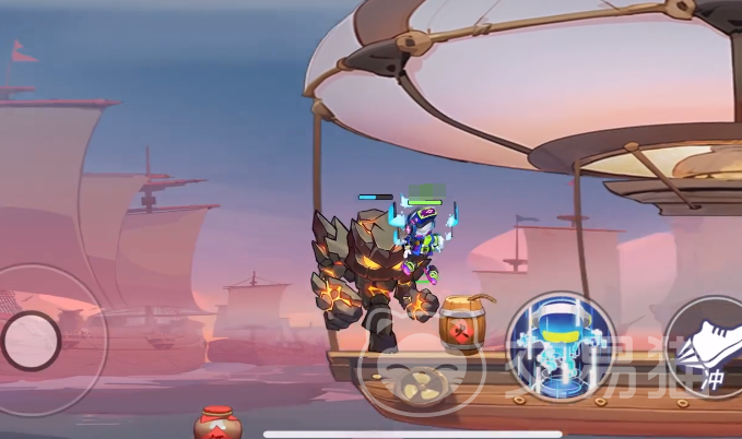 云顶位于场景最高层,其标志性结构为一艘悬浮于空中的巨舰,舰体左端设有酒桶平台,上方连接热气球状穹顶。抵达路径为:沿主舰逐层向上推进→抵达悬浮舰左侧→站上最前端酒桶→立即触发二段跳跃→精准落点至云顶平台。成功登顶后,将可见一个紫色宝箱静置中央,开启后必得强力道具。