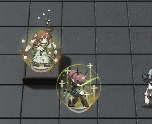 核心机制方面,调香师首项天赋触发条件为:当范围内存在当前生命比例低于自身的友方干员时,自动对其施加庇护效果。一技能为单体治疗技,除恢复生命外,还可提升目标防御力,该增益不可叠加。二技能则侧重部署后的持续强化,激活后可在限定时间内提升自身攻击速度。