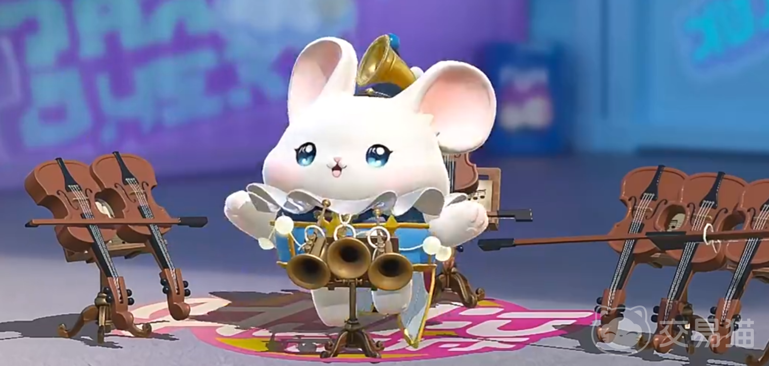 咻咻以灵动小白鼠为原型,突出其在马戏团中担任乐队主力的定位。通体雪白绒毛象征纯粹初心,双颊红晕强化表现力,搭配如蓝宝石般透亮的双眸与饱满笑容,传递音乐表演中极具感染力的情绪张力。