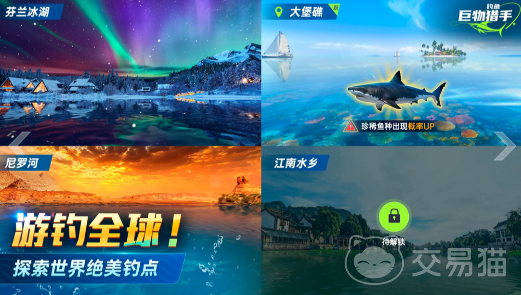 《钓鱼:巨物猎手》是一款沉浸式拟真钓鱼模拟游戏,专为热爱垂钓与海洋探索的玩家打造。游戏采用第一人称视角,还原全球多类真实水域环境——从极地冰封湖面、温带浅湾到深海热泉区,每一处钓点均依据地理气候、昼夜节律及鱼类生态习性进行科学建模,确保鱼种出现时间、活跃水层、摄食偏好高度拟真。