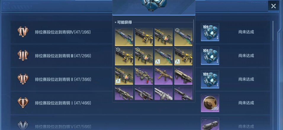 《逆战未来》采用阶梯式段位系统,共设八大主段位,依次为:青铜、白银、黄金、铂金、钻石、大师、战神、巅峰战神。其中,前六个段位(青铜至大师)各自细分为五个小段,以罗马数字Ⅴ、Ⅳ、Ⅲ、Ⅱ、Ⅰ标识,Ⅰ为该段位最高层级,例如“黄金Ⅰ”即代表黄金段位的顶端水平。