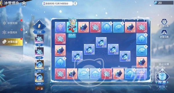 “冰雪乐园”则主打休闲互动体验,以掷骰子为核心机制。玩家消耗指定活动道具进行投掷,落点位置决定所获奖励类型,涵盖稀有资源、限定外观组件及高价值养成材料,兼具随机性与目标感。
