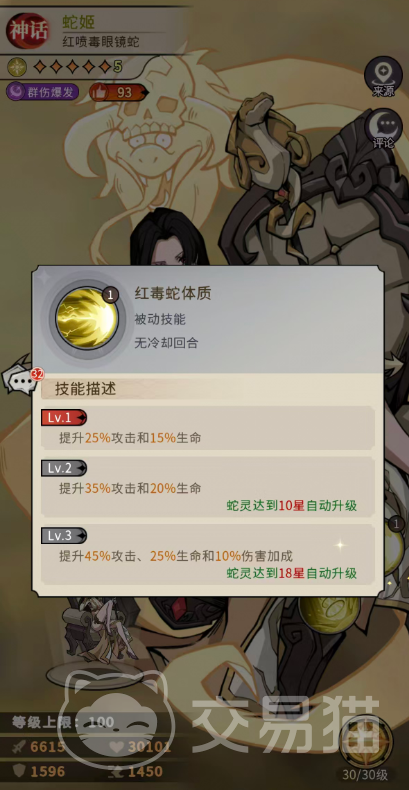 三技能“红毒蛇体质”为基础被动增益,初始提供25%攻击力与15%生命值加成。当蛇姬升至18星并升级该技能至3级后,属性加成提升为45%攻击力、25%生命值及10%最终伤害加成,构成其输出与承伤能力的重要底层支撑。