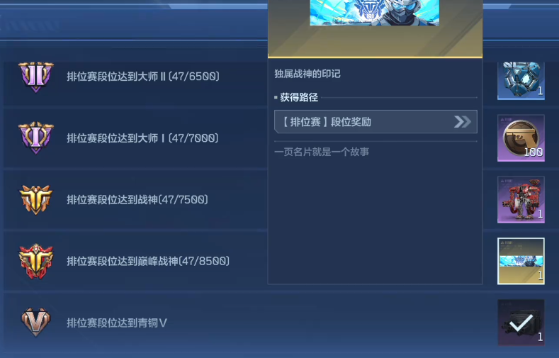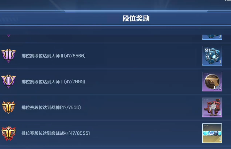 《逆战未来》共设8个主段位,由低至高依次为:青铜、白银、黄金、铂金、钻石、大师、战神、巅峰战神。每位玩家初始段位均为青铜Ⅰ,需通过参与排位赛获取积分,逐级晋升。每个主段位下均细分为5个小等级(如青铜Ⅰ至青铜Ⅴ),当达成当前段位最高小级后,方可晋级至下一主段位。其中,战神与巅峰战神为当前赛季最高段位层级,仅对具备稳定操作、战术意识及团队协作能力的资深玩家开放。