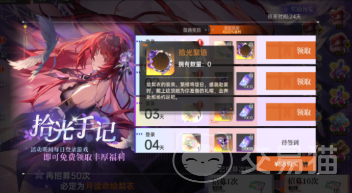 “周年礼赞”签到活动提供长期成长支持:累计签到达标可领取弑罪路明非新皮肤「逆命之握」,以及全新七原罪系列伙伴「傲慢」。虽不直接关联绘梨衣获取,但有效增强账号整体战力储备与内容体验深度。
