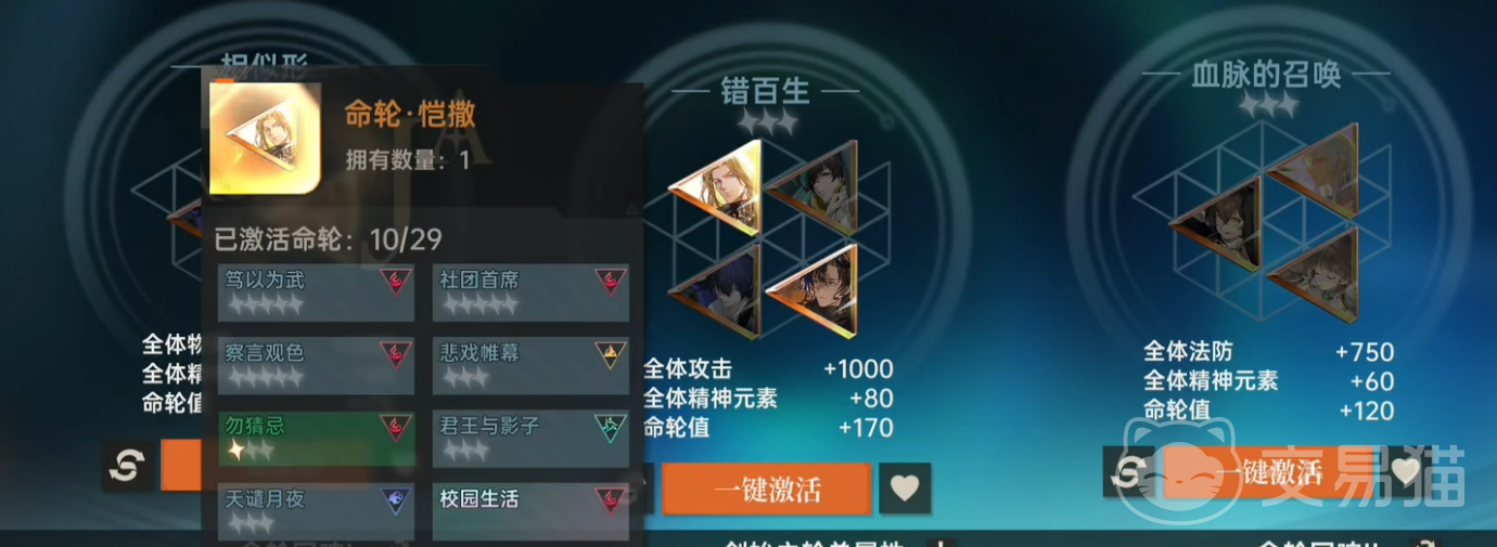 命轮配置的本质是元素资源再分配。以绘梨衣(精神元素)为例,“错百生”命轮包含路明非、恺撒、楚子航及源稚生四名角色。其中前三者均非精神元素适配者,单独激活无法提供精神元素加成;但通过源稚生(精神元素)作为核心羁绊节点,可将其他三名角色的元素属性全部转化为精神元素。这一过程即命轮系统的核心功能:将冗余元素高效转译为目标主C所需元素。