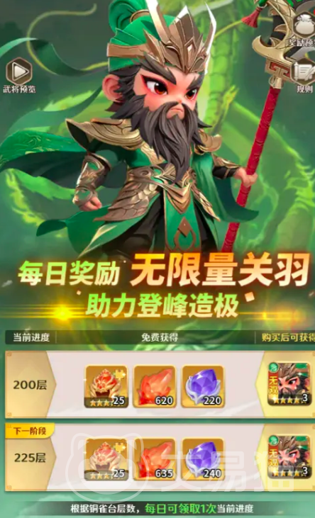 方式一:坚持每日签到并挑战铜雀台。签到流程包含登录确认与铜雀台通关两项动作,其中爬塔层数直接关联稀有武将碎片掉落概率——层数越高,关羽、张飞等核心角色的碎片获取率越显著提升;同时,高层数还可解锁紫雷套装、青霜套装等外观装备,对角色属性成长具有实质性加成。该玩法在游戏前中期尤为高效,推荐新玩家优先投入。