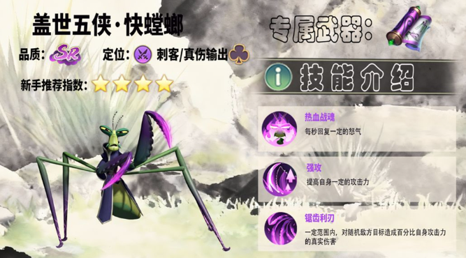 快螳螂属于游戏前期易获取的稀有品质角色,成长路径清晰,资源投入回报明确。随着等级、装备与羁绊系统的逐步完善,其输出上限将持续提升。合理搭配武器强化方向与技能升级顺序,配合稳定的阵容支撑,可使其在中期PVE与部分PVP场景中持续发挥高价值战术作用。