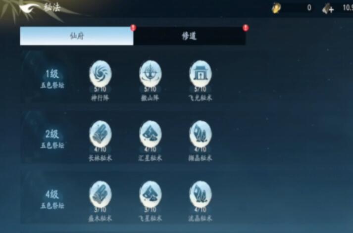 秘法的产出与强化深度绑定特定建筑——五色祭坛。该建筑虽属静态设施,却是秘法生态的关键枢纽:通过升级五色祭坛,可同步提升秘法基础伤害倍率、资源产出效率,并解锁高级秘法研习权限。完成特殊秘法修习后,玩家可触发“仙府迁移”功能,将仙府部署至资源富集且环境威胁较低的战略区域,从而构建可持续成长的发育闭环。