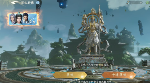 卡池的正式入口位于主界面显著位置的“荒古神像”。该建筑随主线任务进度自动解锁,无需额外操作。进入后可见两大功能模块:【升级】与【召唤】。二者协同运作可显著提升资源利用效率。需注意的是,荒古神像升级本身不改变单次召唤概率,但能缩短免费召唤冷却时间——从一级的20分钟缩减至二级的10分钟。这意味着每日可触发的免费召唤次数翻倍,长期积累下,元神获取量将明显提升。