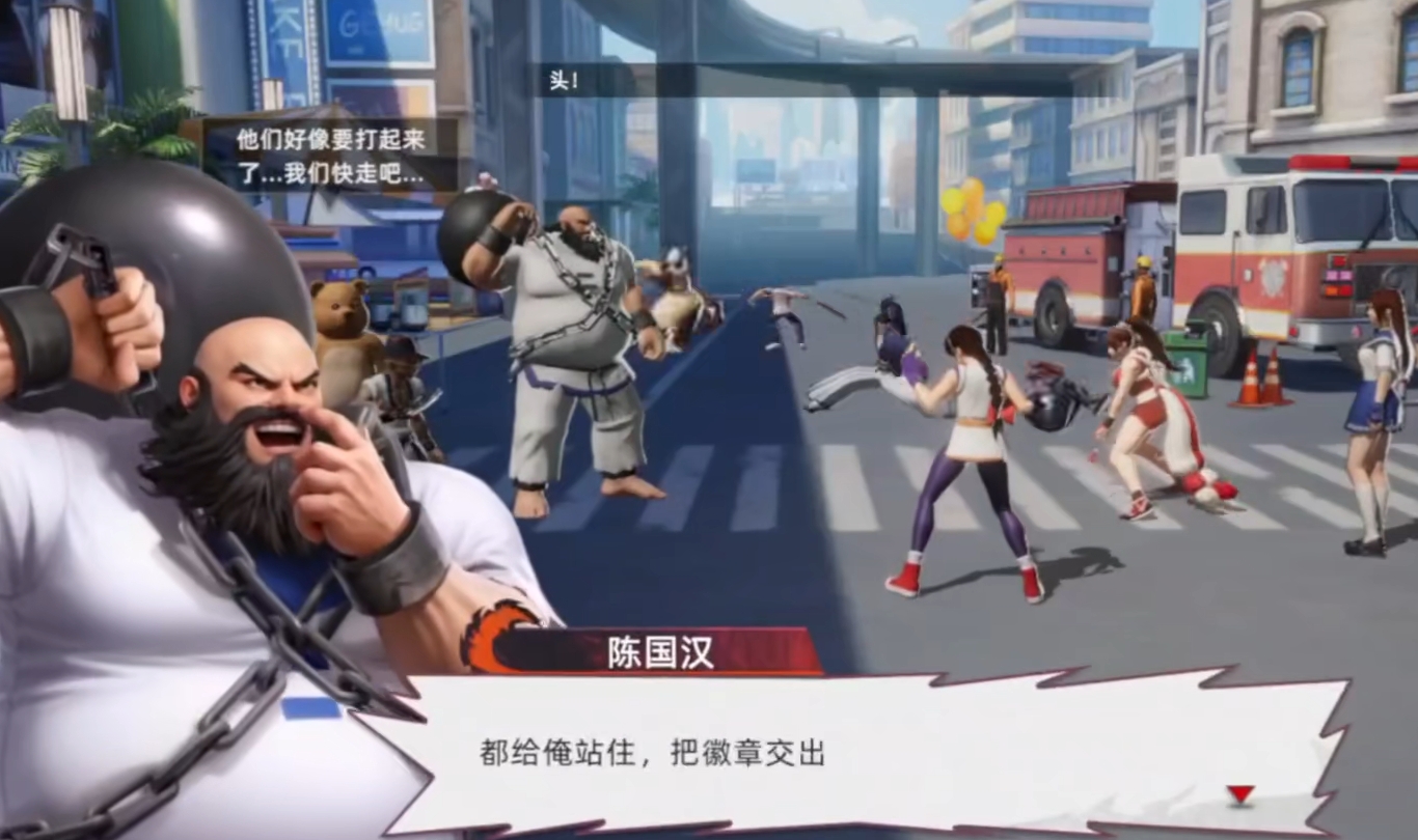 游戏开篇以高燃战斗切入:草稚京与橘右京联手迎战宿敌卢卡尔,激烈交锋后画面骤然切换——时间回溯至三个月前。此时玩家作为异界来客初临拳皇世界,正逢KOF格斗大赛筹备期。赛事规则特殊:唯有集齐三枚徽章,方可获得正式参赛资格;而获取方式,正是通过与其他格斗家对战并夺取其徽章。尚未厘清局势之际,玩家即遭不明身份者突袭,千钧一发之时,坂崎百合及时现身击退敌人。正当玩家向她询问现状,蔡宝奇突然现身索要徽章,在坂崎百合协助下再度化险为夷。