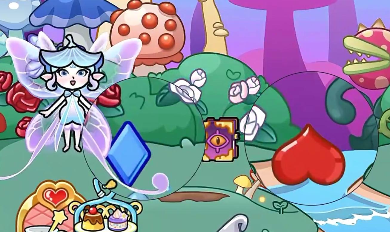 第一阶段目标:转化白色玫瑰花丛。地图中存在一片纯白玫瑰区域,玩家需使用染色壶对其实施染色操作,使其全部变为红色。完成染色后,花精灵将自动出现并完成采蜜动作,随即掉落三件关键物品——一颗红色宝石、一颗蓝色宝石以及一面盾牌。这两颗彩色宝石将在后续环节中作为核心镶嵌组件使用。