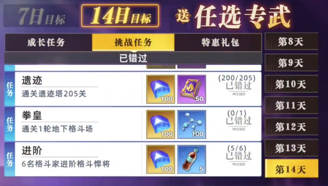 在角色养成策略上,切忌盲目堆高等级。前期通过活动可稳定获取大量招募机会,格斗家池子快速扩充,但主力阵容尚需实战验证。因此,建议按活动任务要求精准提升至指定等级即可,保留金币、经验药水、突破石等核心资源,待主C与副C人选明确、配队逻辑稳定后再集中投入。关于专属武器,除常规卡池抽取外,活动赠送的自选宝箱是重要补充渠道;开启时应优先锁定当前主输出角色的专武,确保核心战力优先成型。