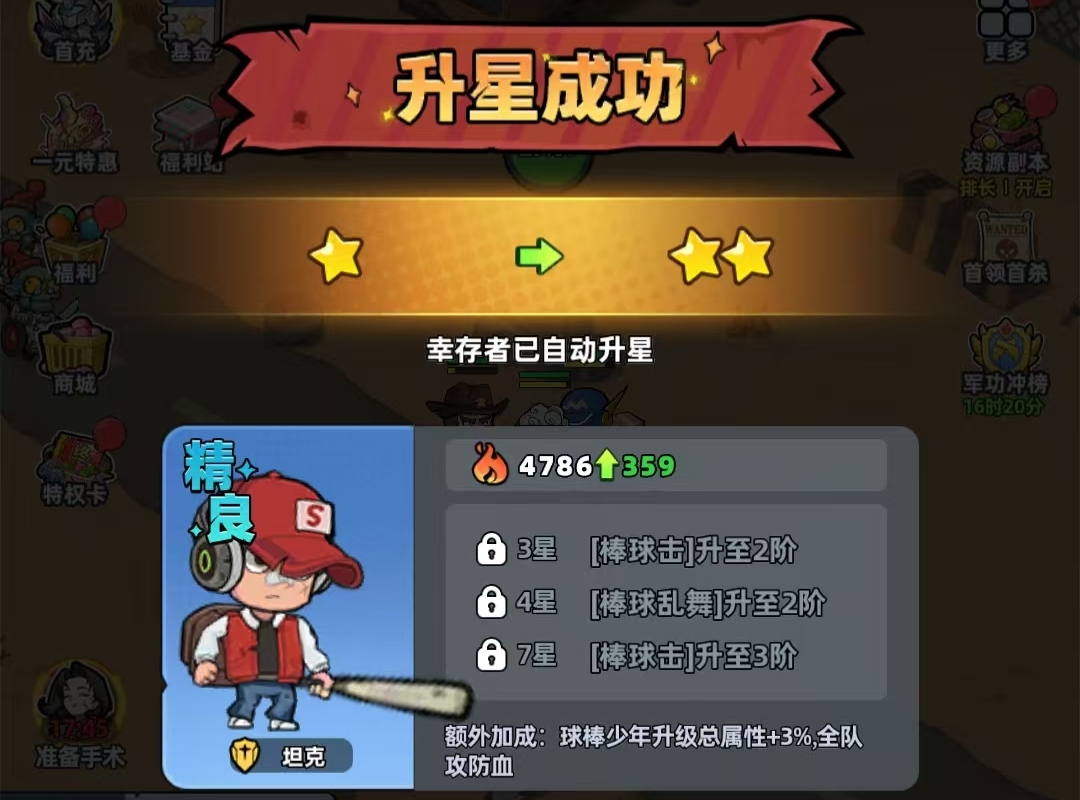 幸存者战力提升依赖多维养成体系:等级成长需消耗经验材料;装备系统支持武器、防具、饰品三类部件装配与逐级强化;技能模块在特定节点开放后,可通过抽取获取技能卡牌并装配至对应职业角色。值得注意的是,技能类型与幸存者定位存在强匹配逻辑——例如突击型角色优先装配攻击增益类技能,支援型角色则适配治疗或减益类效果,混搭将导致属性加成效率显著下降。此外,所有幸存者的等级上限直接受限于玩家当前军衔等级,因此务必同步推进军衔任务,以突破培养瓶颈并解锁更多上阵名额。