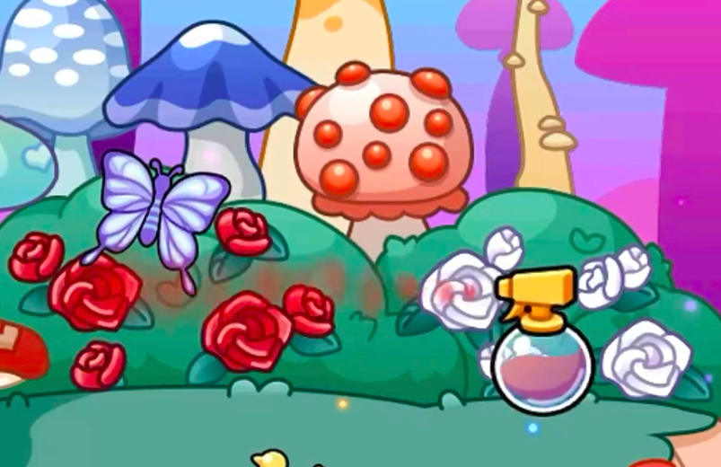 第一阶段:激活花精灵。前往密林小屋获取染色喷壶,对场景中全部玫瑰花丛施以红色染色。颜色变更后,一只花精灵自动现身,依次采集所有玫瑰与蜂蜜。采集完成后,一本悬浮魔法书掉落两枚宝石——红宝石与蓝宝石各一枚,并附带一枚护盾道具。请确保三者全部拾取,缺一不可。
