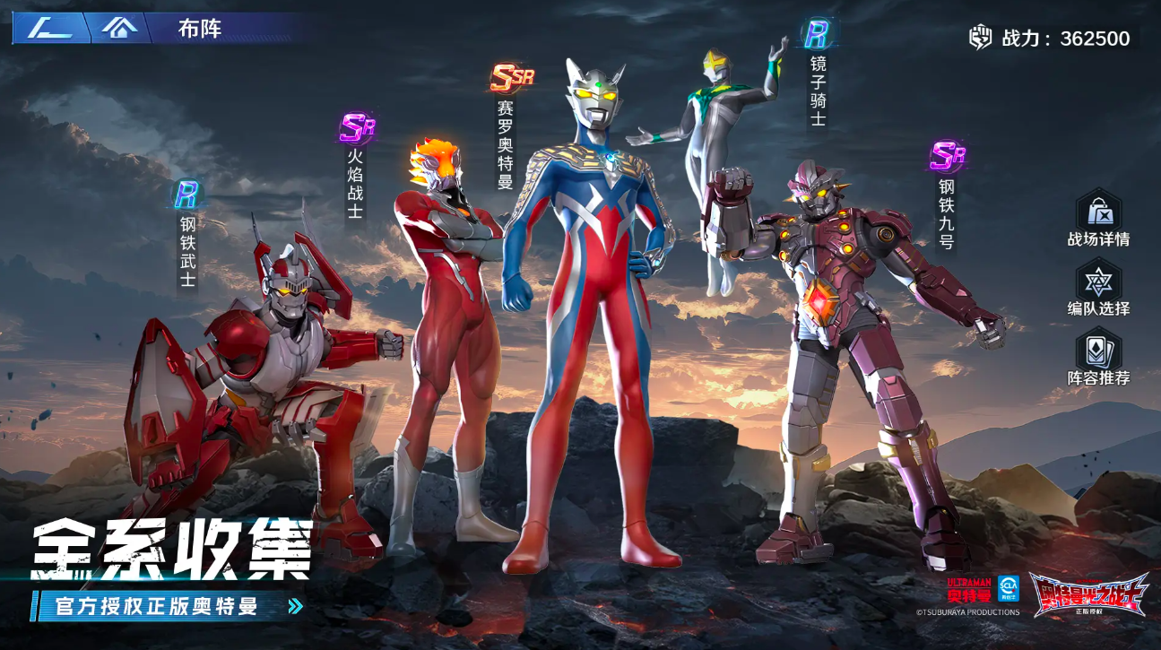 角色获取机制以卡池抽取为主,辅以任务达成奖励与周期性限时活动。所有可操作英雄按力量、速度、技巧三大基础属性划分,形成策略性克制循环。每位奥特曼拥有独立技能组与专属终结动画,战斗节奏与演出风格延续系列一贯的硬核格斗调性。